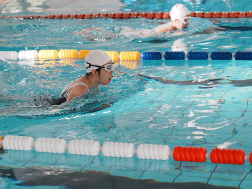29日,游泳比赛提前开赛,成为本届运动会的一大亮点。泳池中,碧波荡漾,参赛老师们身着泳衣、佩戴泳帽泳镜,化身劈波斩浪的健将。选手们蹬壁出发,手臂交替划水,浪花在身侧飞溅,如银练穿梭;老师们动作规范协调,收腿、翻脚、蹬夹一气呵成,在平稳的节奏中向着终点稳步迈进。岸边的加油声、欢呼声此起彼伏,为水中的健儿们注入不竭动力。无论是初次参赛的“跨界” 选手,还是经验丰富的游泳爱好者,都在水中尽情释放活力,用坚持与汗水诠释着体育精神的真谛。