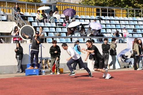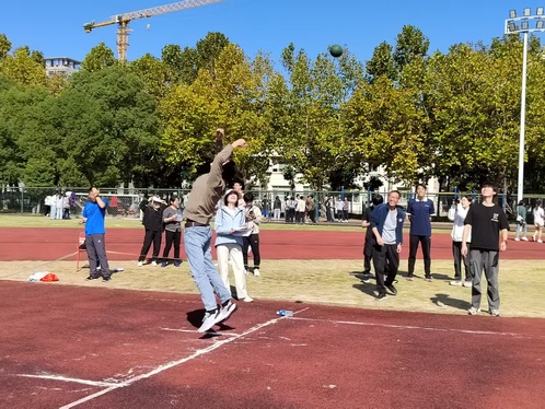 10 月31日,我校第十一届教职工运动会在体育馆、体育场同步拉开帷幕。本届教职工运动会引入游泳项目,构建起涵盖田径、趣味、游泳三大类共14个项目的多元化体系。丰富的赛事设置点燃了全校教职工的参与热情,来自14个分工会的500 余人次踊跃报名参赛,在秋日的校园里掀起一股全民健身的热潮,全校教职工共同参与了这场集趣味、协作、健身于一体的文体盛会。 赛场上,各项比拼精彩纷呈、扣人心弦,老师们将顽强拼搏的体育精神与默契无间的团队协作融入每一个竞技瞬间。体育场上,100 米赛道上,选手们如离弦之箭疾驰向前,耳畔风声与呐喊声交织,上演着速度与激情的较量;跳远沙坑前,运动员们凭借精准的助跑与舒展的起跳,在空中划出一道道优美的弧线,落地瞬间扬起的沙粒见证着每一次突破;实心球赛场边,参赛者双手紧握球体,身体后仰蓄力,而后奋力投掷,实心球带着力量与希望飞向远方,定格成拼搏的剪影。体育馆内的项目同样扣人心弦,趣味5项和团体项目轮番上演,将竞技激情与全民欢乐完美交融,成为赛场之上一道极具感染力的风景线。