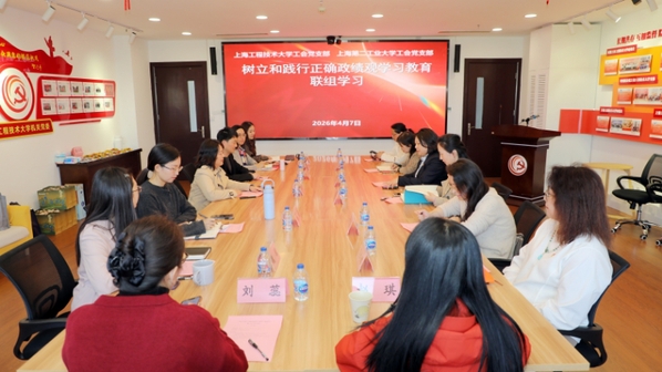 4 月 7 日下午,校工会(妇工委)赴松江大学城,与上海工程技术大学工会联合举办 “树立和践行正确政绩观” 联组学习暨工会工作交流会。